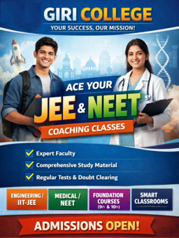 Giri College is a premier institution dedicated to excellence in JEE and NEET preparation along with a regular 4-year B.Tech Degree Programme in Computer Science & Technology, affiliated with Shri Rukmani Dwarkadhish University of Science and Technology. With expert faculty, small batch sizes, concept-based teaching, and regular performance analysis, the college ensures strong academic foundations and exam success. Beyond competitive coaching, Giri College focuses on building industry-ready professionals through hands-on learning, modern technology training, soft skills development, and career-oriented guidance. Our mission is not just to help students crack exams, but to shape confident, skilled, and future-ready professionals prepared for successful careers and leadership.